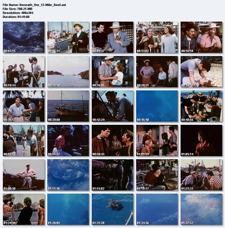 Mike and Tony Petrakis are a Greek father and son team who dive for sponges off the coast of Florida. After they are robbed by crooks, Arnold and the Rhys brothers, Mike decides to take his men to the dangerous 12-mile reef to dive for more sponges. Mike suffers a fatal accident when he falls from the reef leaving Tony to carry on the business. But now he has a companion, Gwyneth Rhys. |