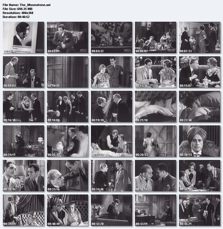 Typical Monogram whodunit from the 30's, with dialogue and sound effects based on the well known mystery book with same title. A valuable gem from India is stolen in an old dark mansion and it is up to Scotland Yard inspector Charles Irwin to find out who did it among all the suspects who were in the house. |